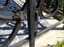 Клиент хотел остановиться на этом и покрасить ограду сам, но через некоторое время попросил сделать это нас. Полностью согласен с таким решением, поскольку среди тех могил, что лично я видел, данная ограда одна из сложных. А хорошо ее почистить и покрасить сможет не каждый. Посмотрите на ограду поближе.