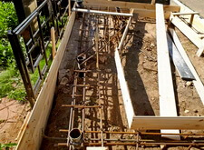После сборки каркаса монтируем опалубку и заливаем её бетоном.