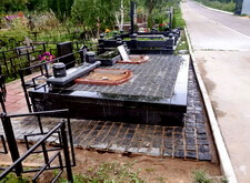 Далее устанавливаем подставки под памятники, заливаем их бетоном и ещё раз кладём подложку.