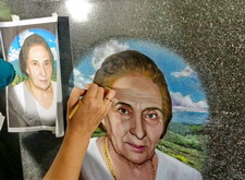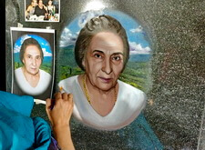 Далее этот же мастер окрашивает портрет и покрывает лаком.
